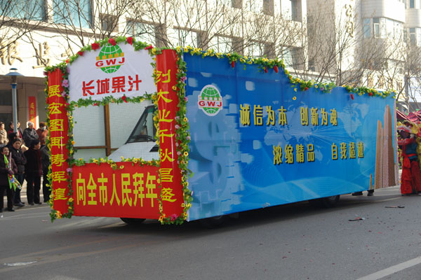 為歡慶新春佳節,農歷虎年正月十二、十三,公司社火隊參加了天水市秦州區、麥積區2010年新春民間民俗社火匯演。社火隊由舞龍、舞獅及大型彩車(chē)共40多人組成。